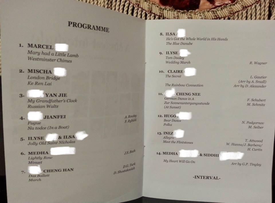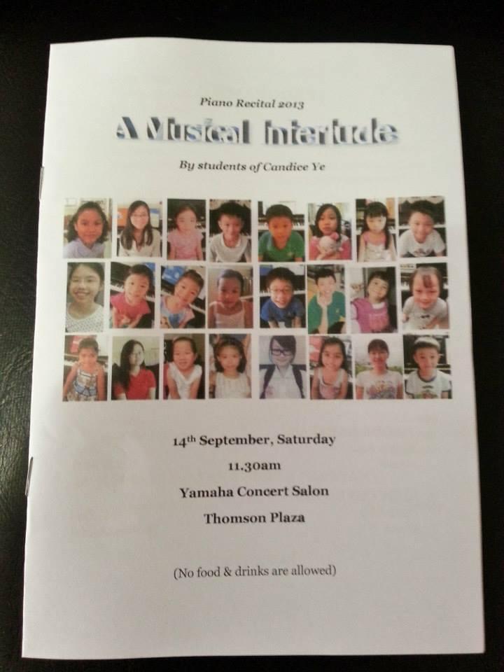 Here are some photos from the past years’ student piano recitals, namely: Joie de la Musique (a joint student piano recital with another piano teacher friend, held on 8th September 2012), and A Musical Interlude 2013 (a student piano recital for my own students, held on 14th September 2013).